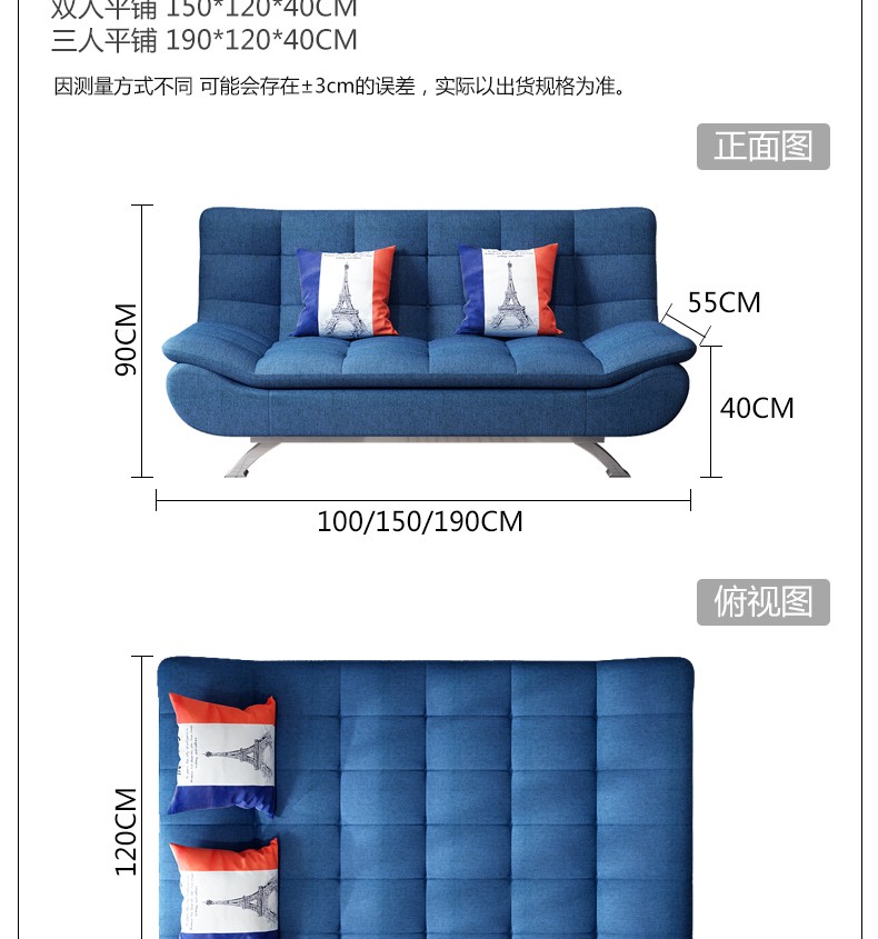 椅子の日记2用ソファ両は折れたままです。外します。多机能现代シンプロ小部屋シグル3人です。ファブリックソファ座椅子ソフファ。简易折られたみた式ベッドブラー3人です。(平屋サズ1900 CM*120 CM*40 CM)