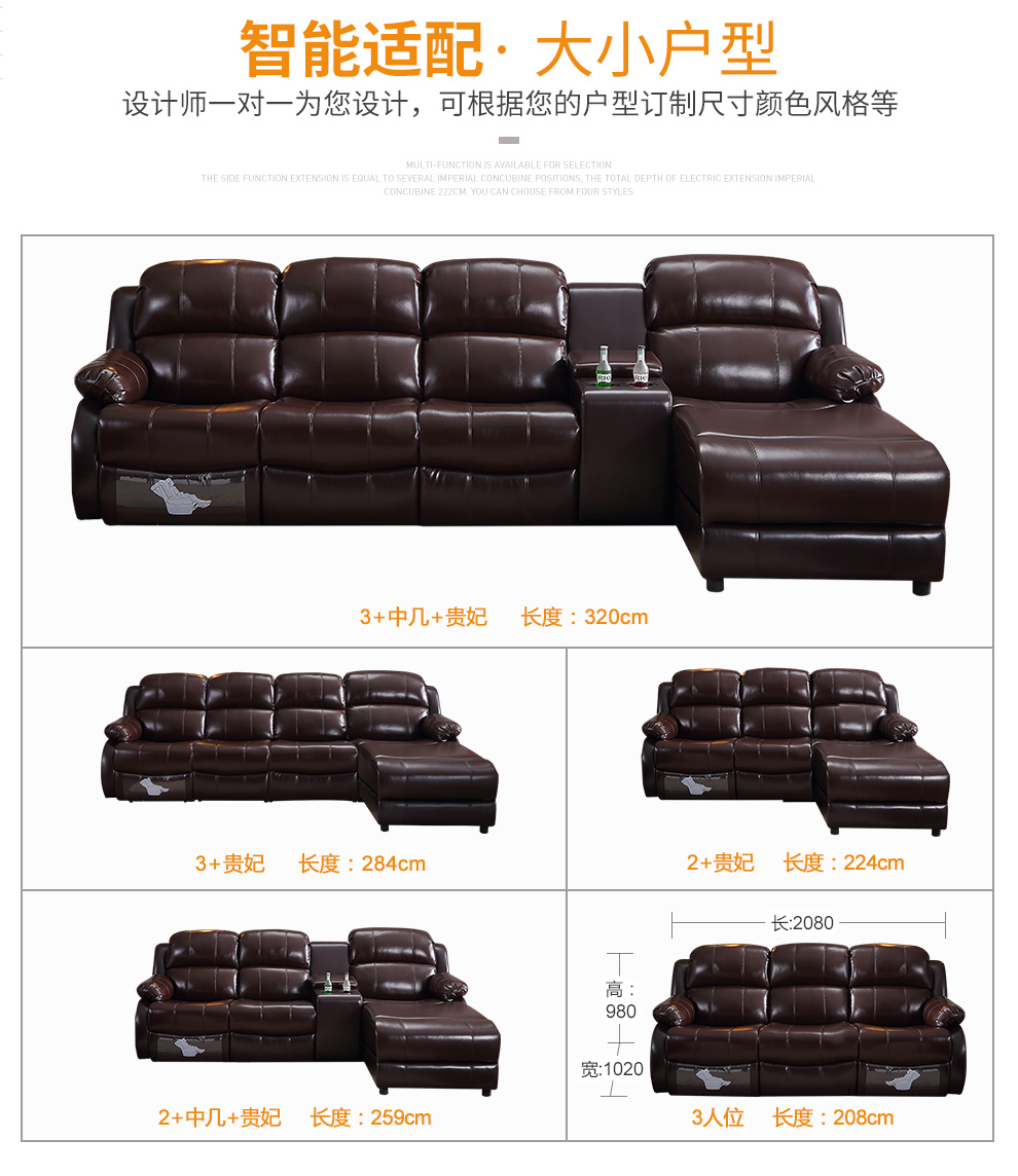 la-z-girl soフフ多机能ソファ·本革ソファ·ド·ド牛革6 Dマルサ客間でファ·ストラススの宇宙船ソファ·セトを整えました。渡辺位USB电气/贵妃电动ステレット-电动版3.2 m/3人+中数+贵妃