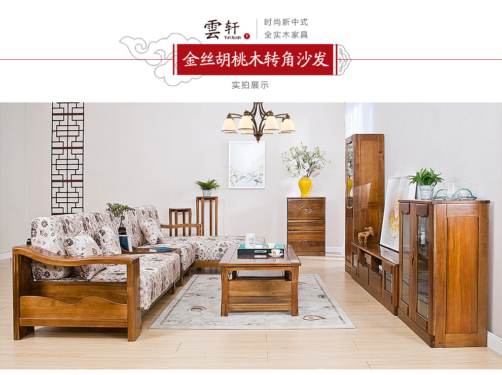 青岛一木全纯木ソファ·ァ·金丝克ル·ソフ·回転角ソファ·L字现代中国式ソファ·グー·グー·ァ·ル基ソファ·纯木座家具ソフ·全套【中间贩売场を持った】
